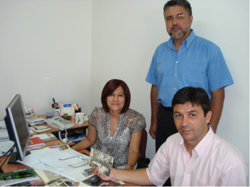 Professor W.A Muller (front right) donating and recording materials for the Lebanese Emigration Archives and Database with LERC indexer Mrs. L. Haddad and LERC Latin American Liaison Officer Mr. R. Khatlab (July 2009).