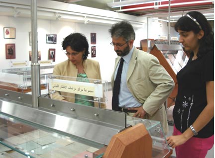 Following the discussions, Dr. Kouros was then taken on a tour of the LERC library and archives, and was introduced to the Lebanese Emigration Archive and Database (LEAD), which is involved in the process of indexing original documents and building up the electronic archive of the Center.