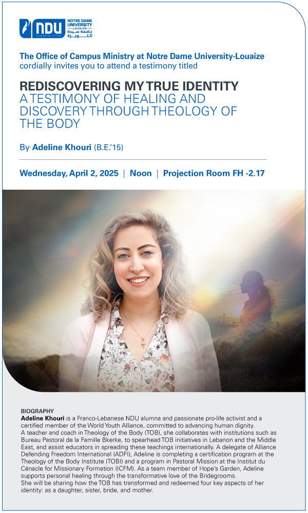 12:30 p.m. The Office of Research and Graduate Studies at Notre Dame University-Louaize (NDU) will host a seminar highlighting the recent contribution of Dr....