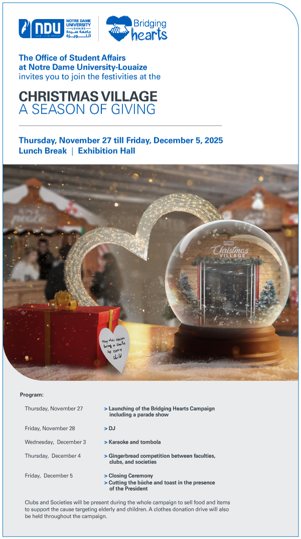 The Department of Sciences, Faculty of Natural and Applied Sciences at Notre Dame University-Louaize (NDU), cordially invites students and members of...