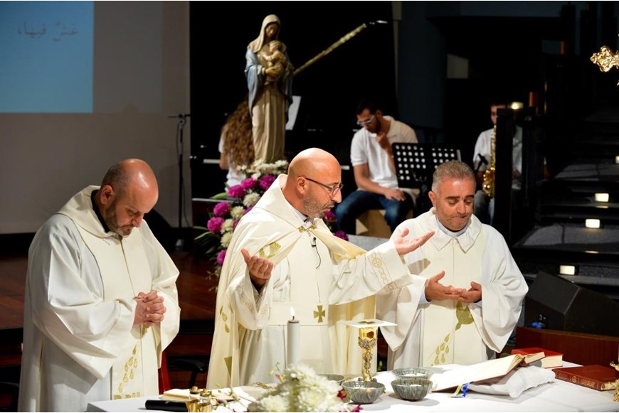 NDU President Fr. Walid Moussa presided over Mass, assisted by NDU Vice-President for Finance Fr. Bechara Khoury; NDU Vice-President for Administration Fr. Pierre Najem; NDU University General Chaplain Fr. Georges Nassif; NDU University Chaplain Fr. Marc Khoubbieh, NDU Shouf Campus (SC) Director Fr. Hanna Tayyar; and other NDU priests: Fr. Khalil Rahme; Fr. Akram Khoury; Fr. Joseph Tannous.