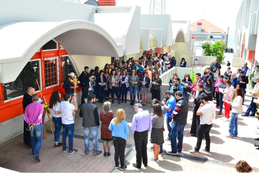 The Way of the Cross took place on Tuesday April 11, 2017, at noon, NDU main campus, in the presence of NDU University Chaplain General Fr. George Nassif, NDU University Chaplain Fr. Marc Khoubbieh, and a large number of NDU faculty and staff. The ceremony marked the Fourteen Stations of the Cross; the stations were distributed all around campus, starting from the administration yard through all the Faculties and back.